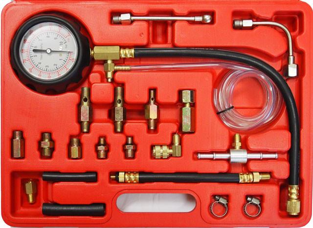 В продаже можно найти готовые наборы для измерения давления топлива в рампе. В комплекте с манометром будет набор фитингов для подключения к наиболее распространенным типам систем подачи топлива. Перед покупкой прибора обязательно уточните наличие в комплекте переходника, подходящего для измерения давление в рейке вашего автомобиля.