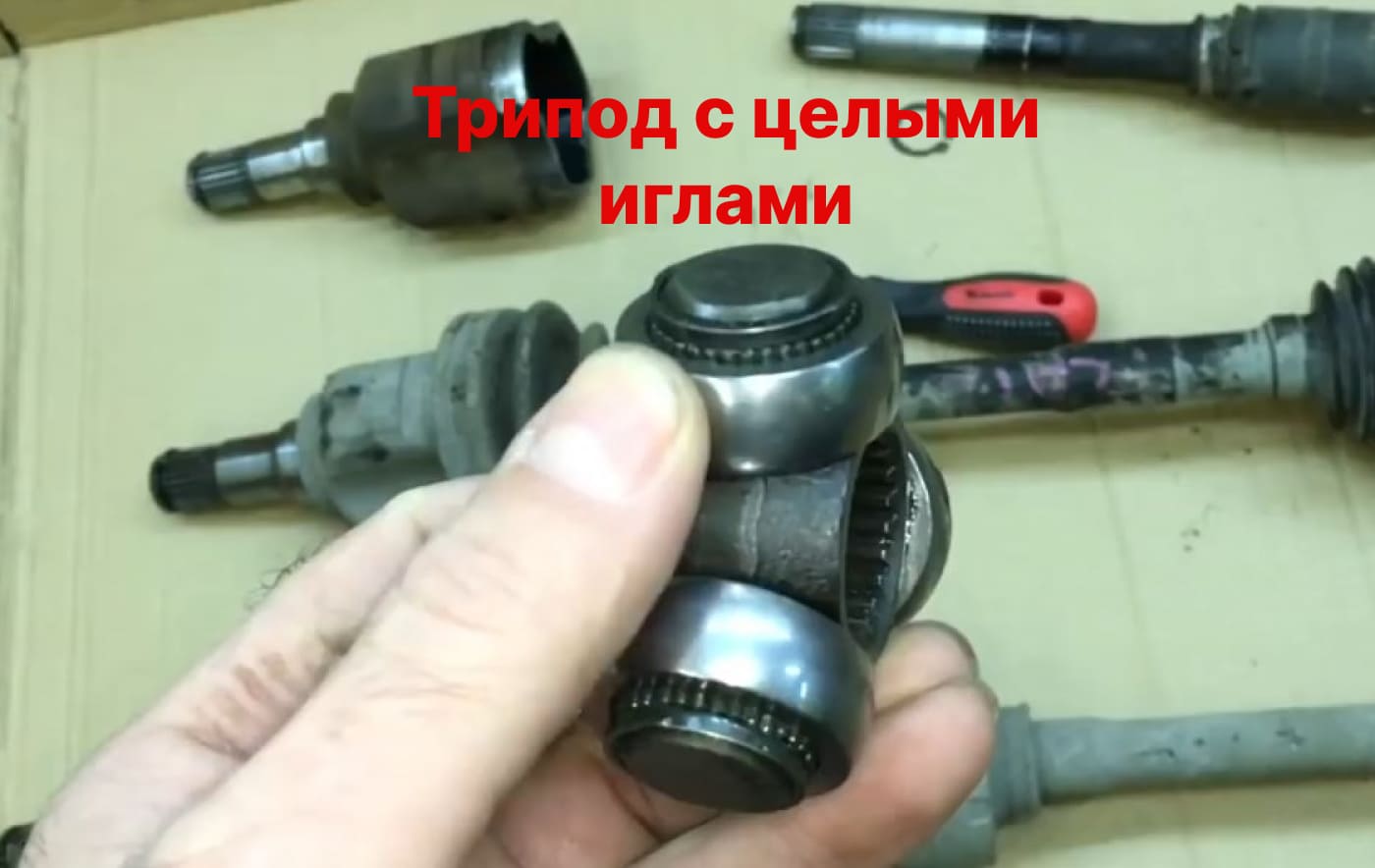 При вибрации проблемы возникают непосредственно с внутренней поверхностью гранаты и триподом, который в ней находится. В триподе имеется три игольчатых подшипника, которые и обеспечивают равенство угловых скоростей при движении колеса в разных плоскостях и поворотах. В результате длительной эксплуатации, перегрузок, динамических ударов и других негативных факторов, иглы из подшипников трипода начинают выпадать, он работает неравномерно, что приводит к вибрациям при движении авто. В этом случае весь ШРУС подлежит замене, тем более, что при поворотах со временем появляется неприятный металлический хруст.