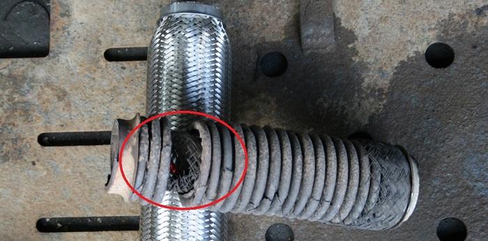 При замене обязательно обратите внимание на характер повреждения. Возможно, гофра глушителя разрушилась из-за неправильного крепления выхлопной системы и слишком малого расстояния до земли. Пропускная способность установленного за гофрой катализатора влияет на температуру выпускного тракта. В выхлопной системе до забитого каталитического нейтрализатора повышается температура и увеличивается давление газов. Уменьшение срока службы гофры глушителя в таком случае вполне прогнозируемо.
