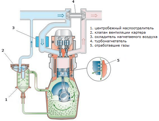 За дозирование порции газов отвечает клапан PCV. Если по каким-либо причинам клапан не будет справляться со своей задачей, внутри ГБЦ образуется избыточное давление. Причина неисправности может быть как в самом клапане, так и в изношенной цилиндропоршневой группе. При изношенных компрессионных кольцах, увеличенном зазоре между поршнями и цилиндрами системе вентиляции картера труднее справляться со своей задачей.